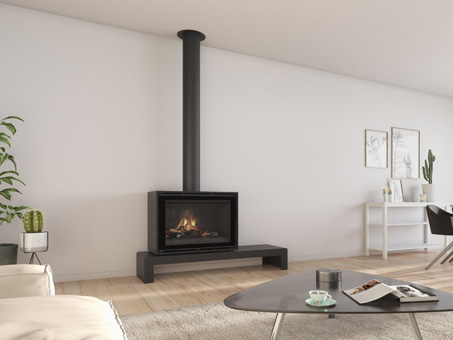 Poêle à bois - MODIVAR sur plateau flottant - 5 Kw Avec le Modivar 5 kW sur plateau flottant, vous pouvez profiter d'une belle vue[...]